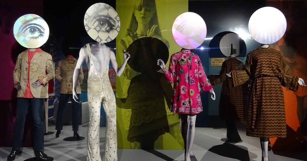 Il percorso si articola in sette sezioni tematiche, aprendosi con un allestimento sulla Swinging London. Possiamo, così, ammirare i mini-abiti indossati da Twiggy e Jean Shrimpton e i costumi eccentrici realizzati per Mick Jagger e Sandie Shaw, seguire lo sviluppo di alcune importanti gallerie artistiche come Indica Gallery e guardare il mondo attraverso la macchina fotografica di Terry O’Neill.