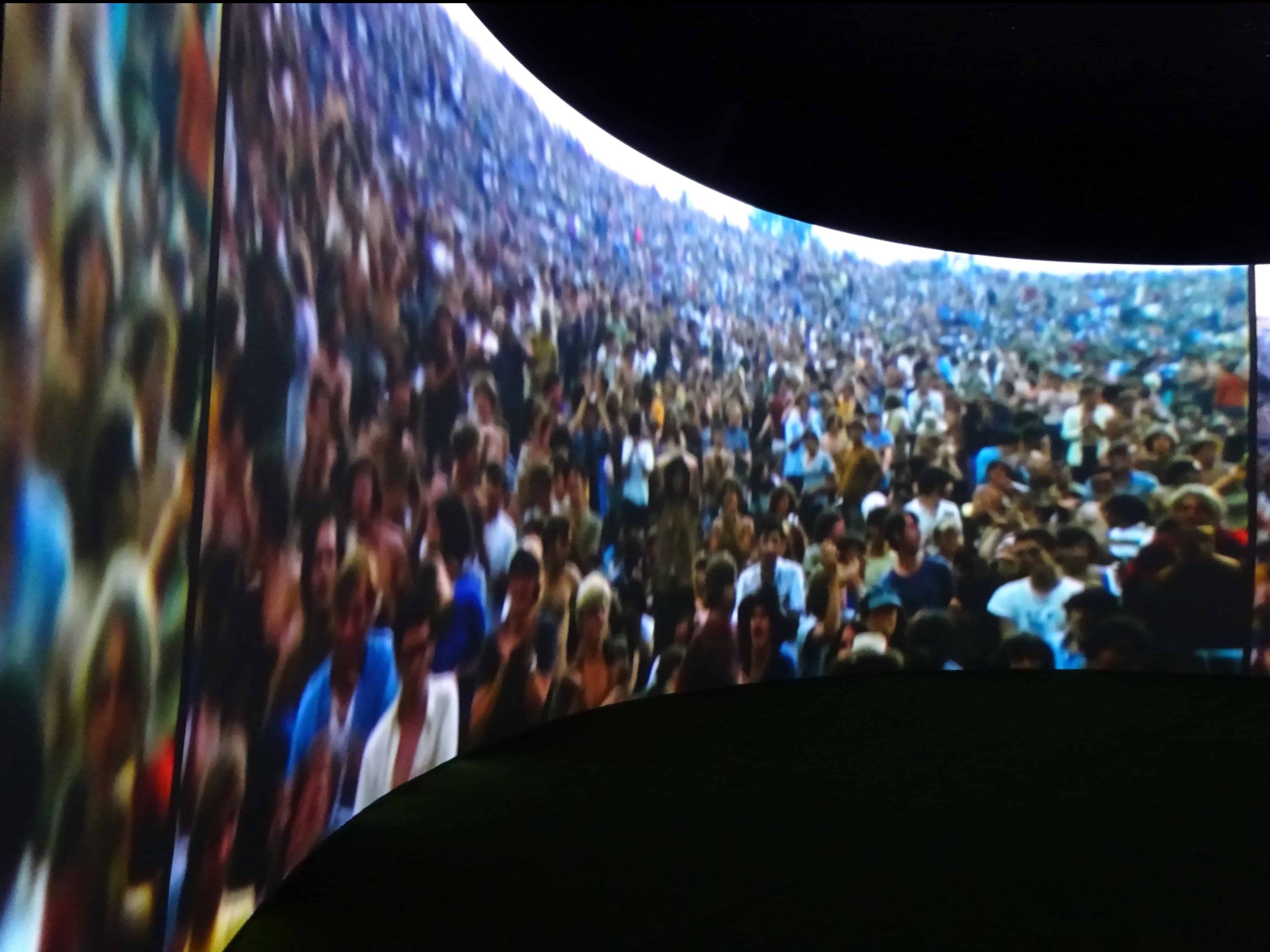 E dopo aver guardato i volti dei partecipanti nelle fotografie d’epoca, osservato vestiti e oggetti da loro indossati in questa celebrazione della vita libera da condizionamenti sociali e ammirato la batteria originale di Keith Moon degli Who, vi troverete all’improvviso nel caldo agosto del 1969, in una sala dotata di enormi schermi e cuscini, per rivivere l’esperienza di Woodstock prima di tornare di nuovo nel 2018.