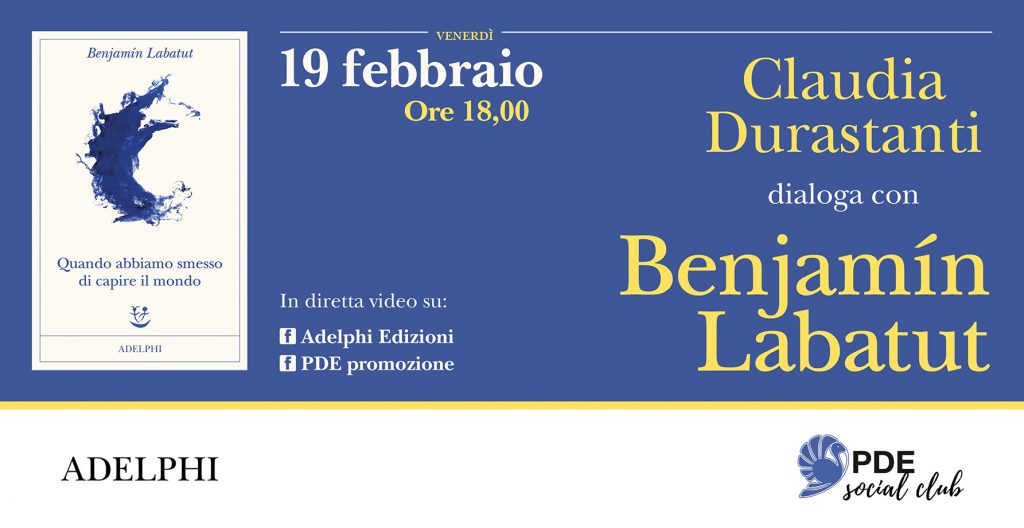 Il 19 febbraio, alle 18.00, sulle pagine Facebook di Adelphi, di PDE, e delle librerie che aderiscono alla messa in onda, tallonato dalle domande di Claudia Durastanti, Benjamín Labatut ci racconterà cosa lo ha spinto a sprofondare nella storia della scienza novecentesca, a esplorare (forte di rigorosa documentazione, ma con una spruzzata di risolutiva invenzione romanzesca) la vita di chimici, matematici e fisici che hanno cambiato il modo di intendere il mondo e il destino di miliardi di individui.