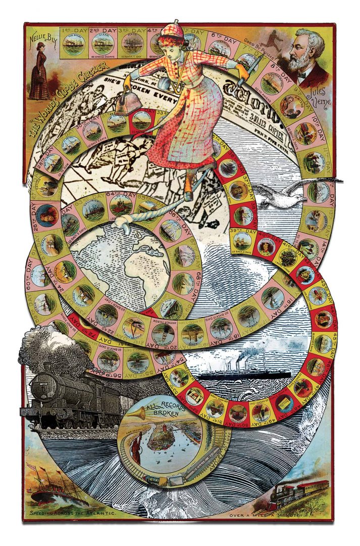 E ancora, Nellie Bly conosceva certamente Verne. Pioniera del giornalismo investigativo sotto copertura, fu la prima donna a compiere un viaggio intorno al mondo in solitaria, ispirata da Il giro del mondo in 80 giorni. Lei, lo scriviamo per dovere di cronaca, ne impiegò 72 di giorni. Così, anche la giornalista, in questa storia, entra in possesso, seppur per un breve periodo, del volume delle meraviglie.