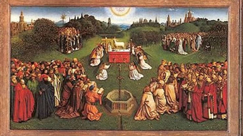«L’Agnello è stato ucciso e solo quel sangue versato ha redento ogni “tribù, lingua, popolo, nazione”. – afferma Calasso – Nulla di meno dell’opera di Gesù. Ma chi era venuto prima? Chi era il modello?». E poi come mai l’Apocalisse, si chiede ancora l’autore «sentiva il bisogno di far crescere un novum sulla terra abolita? Non bastava che Gesù avesse riscattato gli uomini, tutti gli uomini? Ma l’Agnello di Dio continuava a sanguinare. Per secoli si era letto dell’Agnello nell’Apocalisse. Nessuno aveva osato raffigurarlo. Era come fosse legato nel testo. Poi van Eyck provò – e apparve qualcosa di abbagliante, unico. Nessuno osò ripeterlo».
